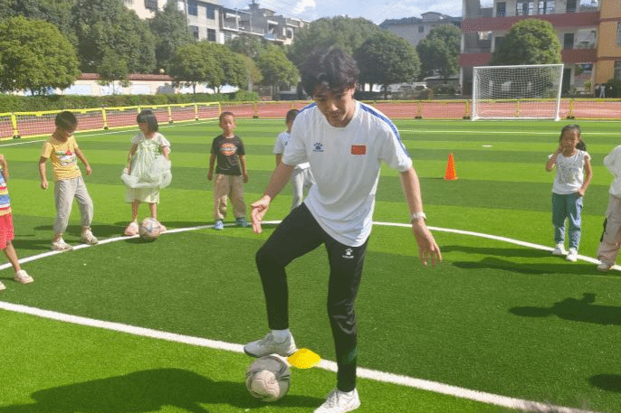 2024级硕士研究生康润芃支教的路下小学,是一所获评“全国足球特色学校”的乡村小学。尽管学生总数不多,但学校足球氛围浓厚,每位孩子都对足球怀有真挚的热爱。在支教过程中,他不仅传授足球技战术知识,更注重以足球为育人载体,培养学生克服困难的勇气、遵守规则的意识与公平竞赛的精神。