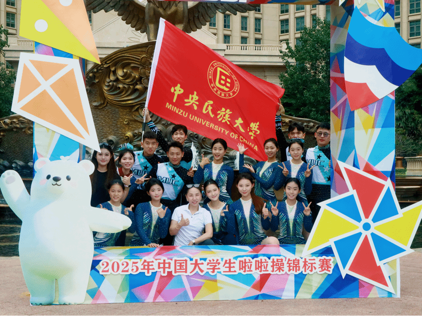 11月12日至17日,由中国学生体育联合会主办、儋州市体育局承办的2025年中国大学生啦啦操锦标赛在海南儋州海花岛圆满落幕。中央民族大学健美操队与来自北京体育大学、华东师范大学、浙江大学等全国90余所高校的1400余名运动员同台竞技,凭借出色的表现与鲜明的民族风格,斩获一金、一银、一铜的优异成绩!